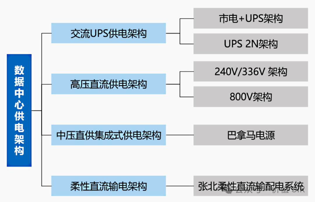 第二部分將介紹數(shù)據(jù)中心的四種供電架構(交流UPS、高壓直流HVDC、中壓直供、固態(tài)變壓器)及產(chǎn)業(yè)發(fā)展情況。